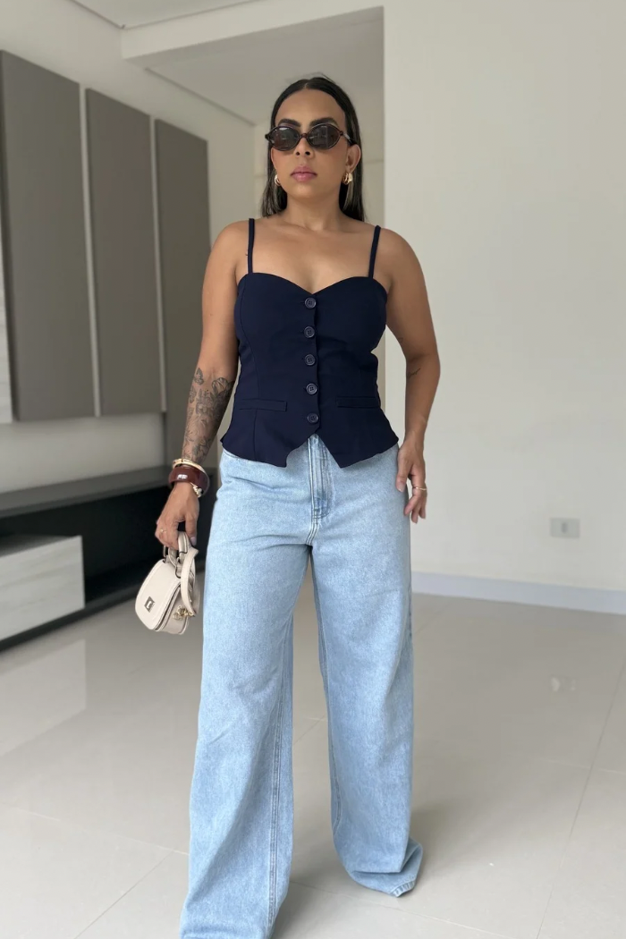 Combine com calça de alfaiataria para um look elegante e alinhado. Para uma proposta mais despojada, use com jeans de cintura alta e sandálias. Também fica incrível com saia midi ou pantalona para um visual sofisticado e feminino. Aposte em acessórios minimalistas para destacar os detalhes da peça.