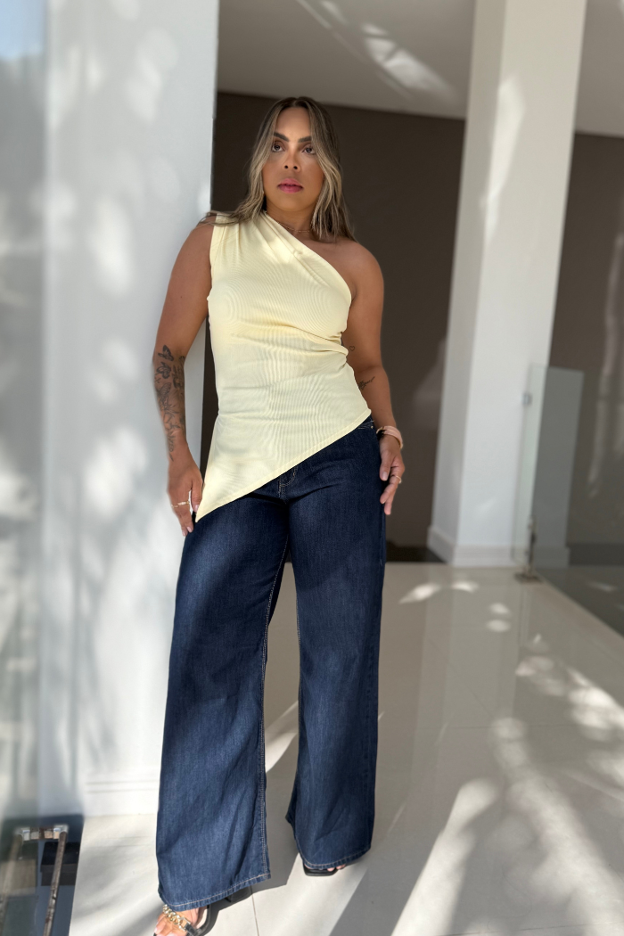Regata canelada com modelagem moderna e cheia de estilo. Possui alças com detalhe drapeado que trazem um toque diferenciado e fenda lateral que garante mais conforto e movimento ao vestir. Versátil e atemporal, é perfeita para compor desde looks casuais até produções mais elaboradas.