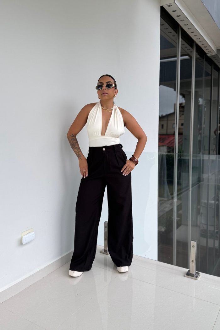 Combine a regata frente única com calças de alfaiataria ou saias midi para um look elegante, perfeito para eventos ou ocasiões especiais. Para uma proposta mais casual chic, aposte em jeans de cintura alta e acessórios dourados. Nos dias mais frescos, finalize com um blazer estruturado para um visual moderno e equilibrado.