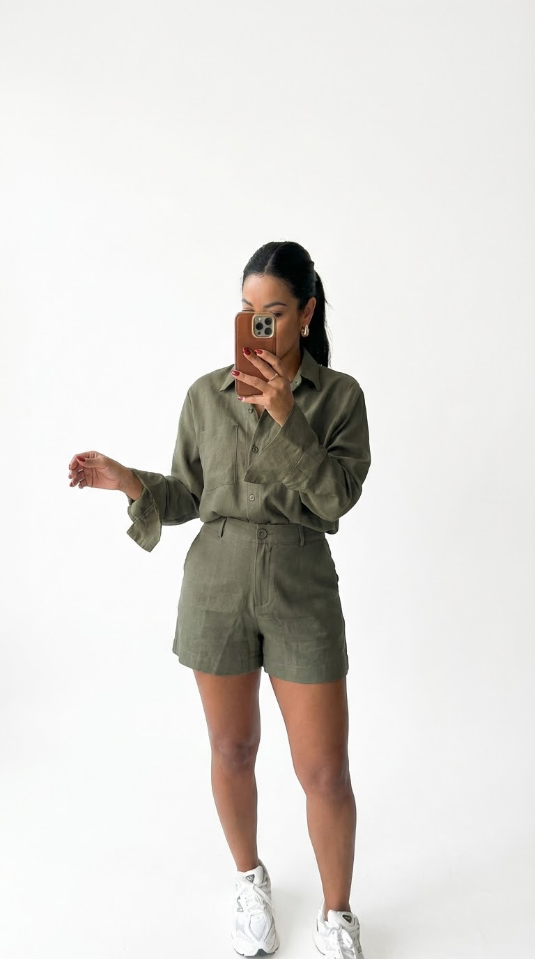 O short de alfaiataria com bolso frente e costas é a união perfeita entre sofisticação e praticidade. Com corte estruturado e acabamento refinado, ele traz um visual elegante sem abrir mão do conforto. Uma peça-chave para compor looks que vão do casual chic ao mais arrumado com facilidade.