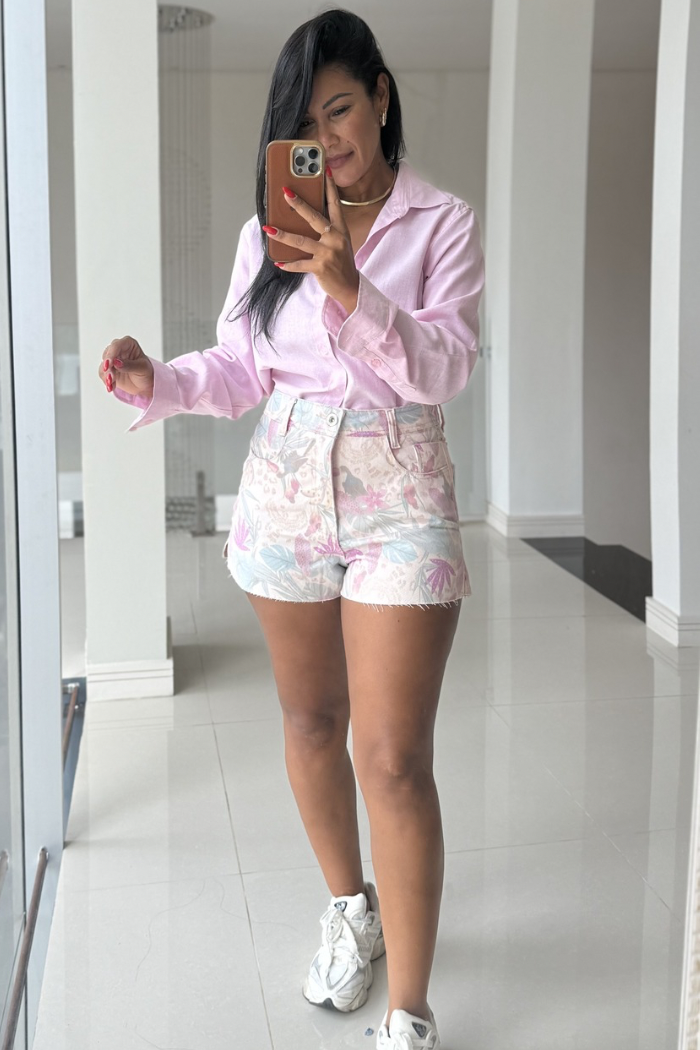 O short floral em sarja é um item indispensável para os dias mais quentes. Versátil, confortável e cheio de personalidade, ele transforma produções simples em looks cheios de charme. Além disso, a sarja oferece durabilidade e excelente custo-benefício, tornando essa peça um investimento certeiro para o guarda-roupa.